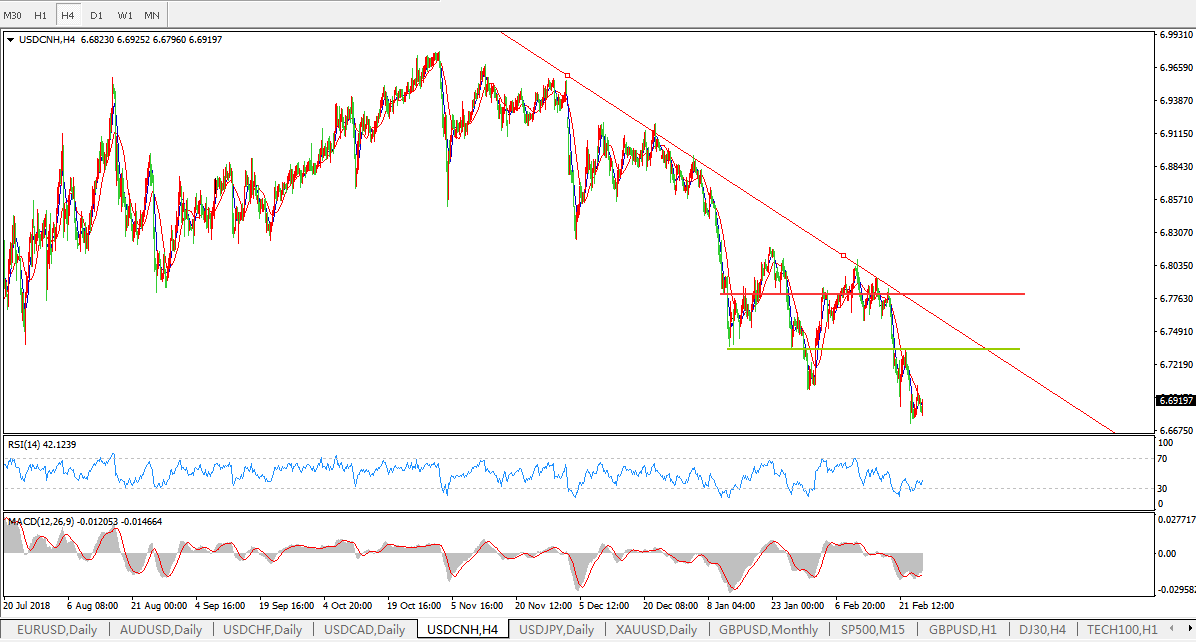 美元兑人民币USDCNH  4小时图: