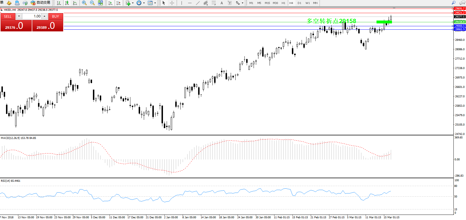 恒指HK50 ——4小时K线图显示: