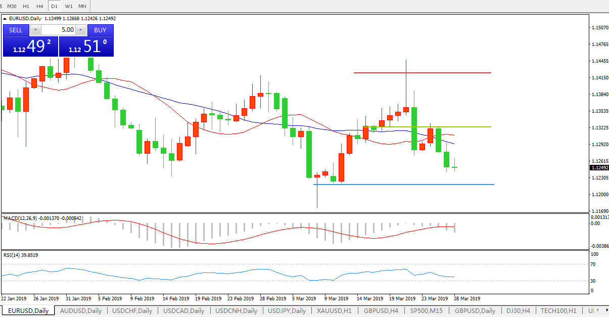 周三(3月27日)美元走高,美元指数逼近97关口,刷新近二周高点至96.98。欧元兑美元跌近0.2%,欧洲央行行长德拉基周三表示,欧元区正面临外部需求更持续的恶化,欧洲央行准备在必要时进一步推迟加息计划。荷兰国际集团研究团队讨论了欧元兑美元的技术前景,表示数日内将保持倾向下行的中性立场。短期内欧元兑美元价格可能走低,但并不会是清晰的趋势。这意味着其价格可能向着1.1215-1.1115这一强劲支撑区域下跌,但不会引发严重的抛售信号。