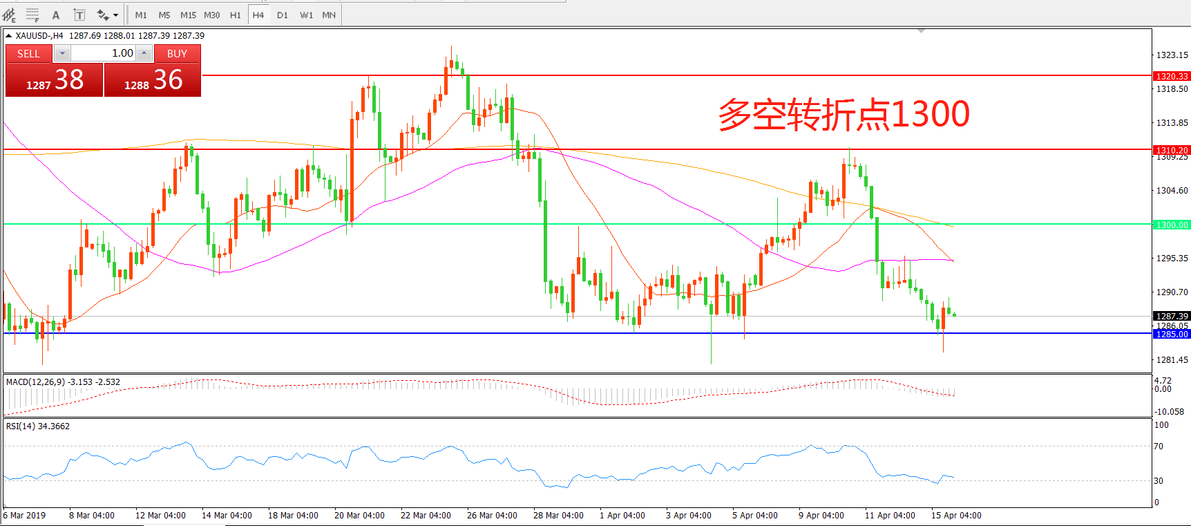 多空转折点:1300.00