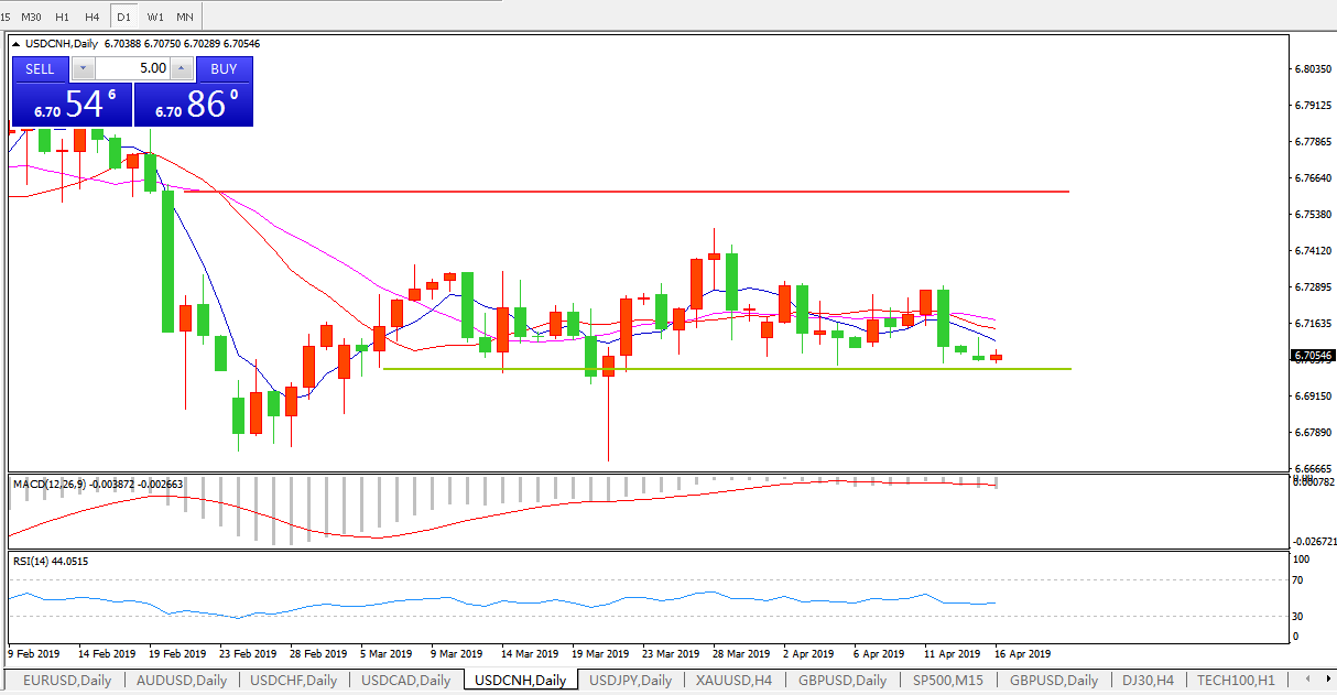 美元兑人民币USDCNH 日线图: