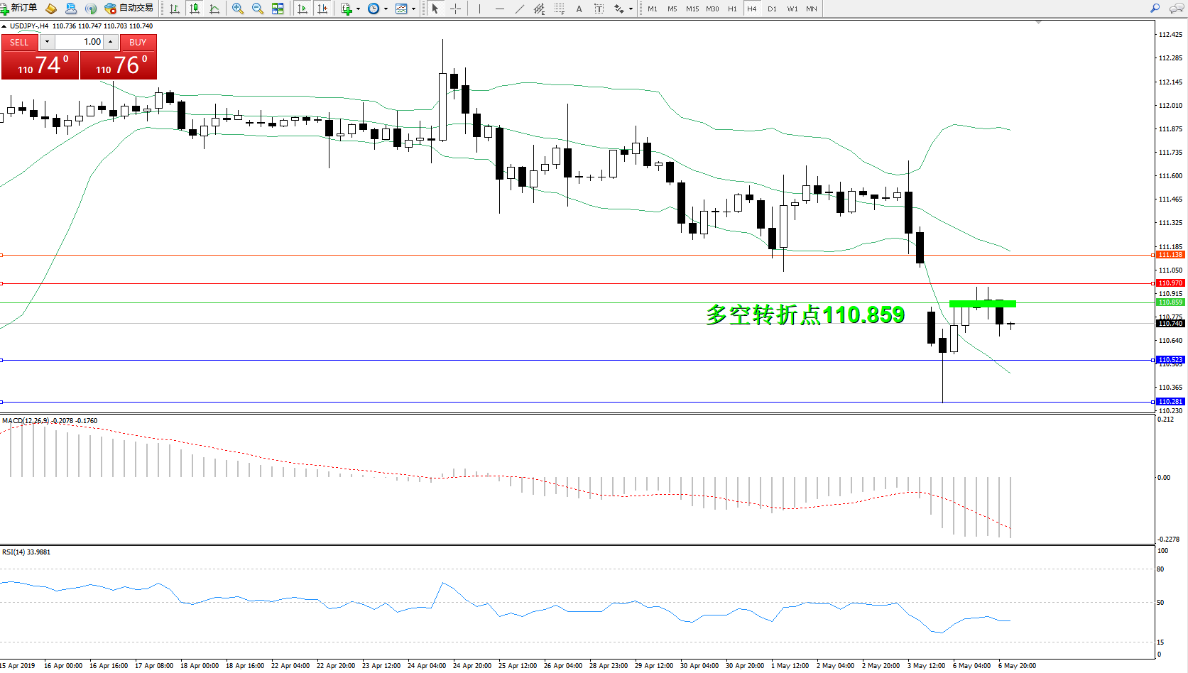 交易策略:110.859下方看跌,目标110.523、110.281