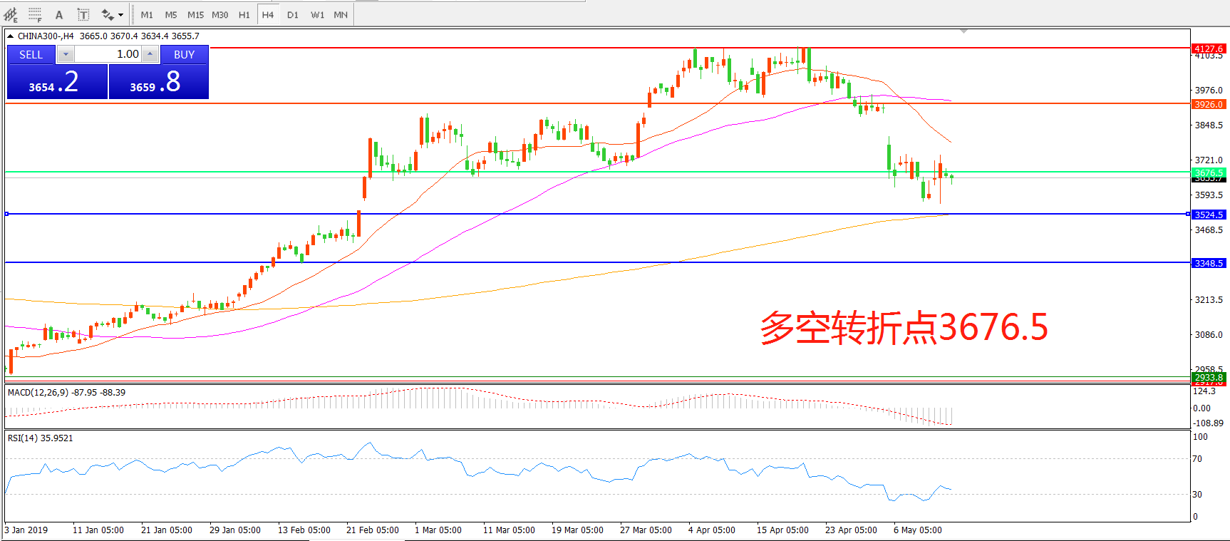 多空转折点:3676.50