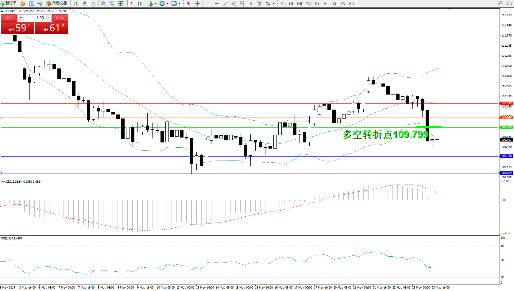 交易策略:109.799下方看跌,目标109.310109.019
