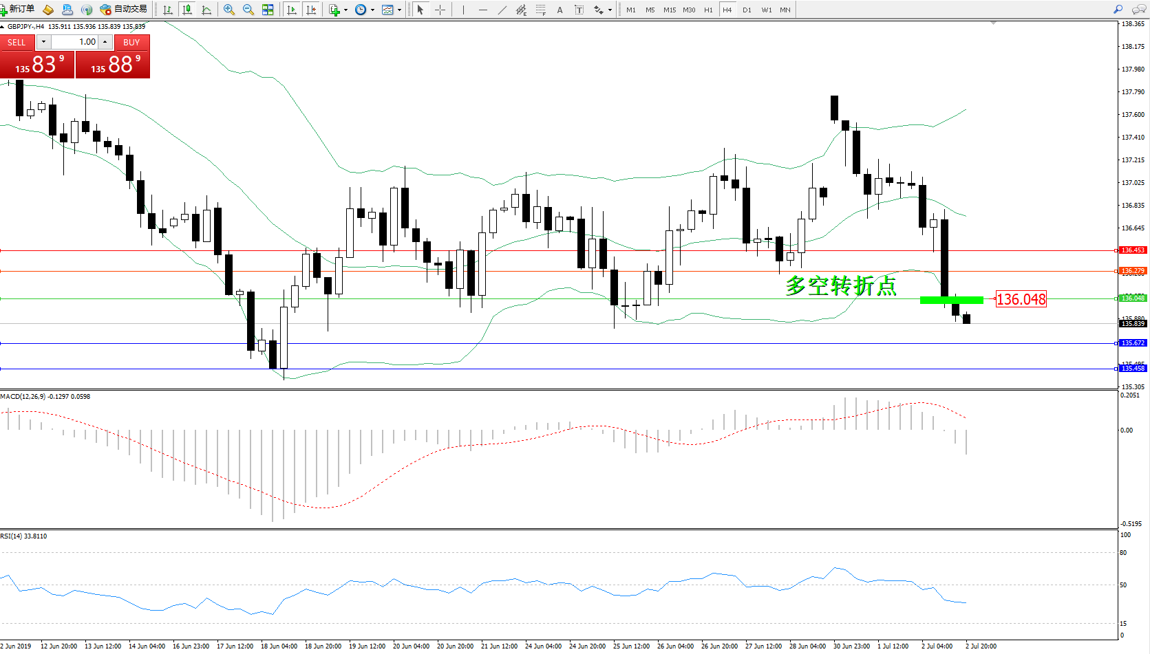 交易策略:136.048下方看跌,目标 135.672135.458