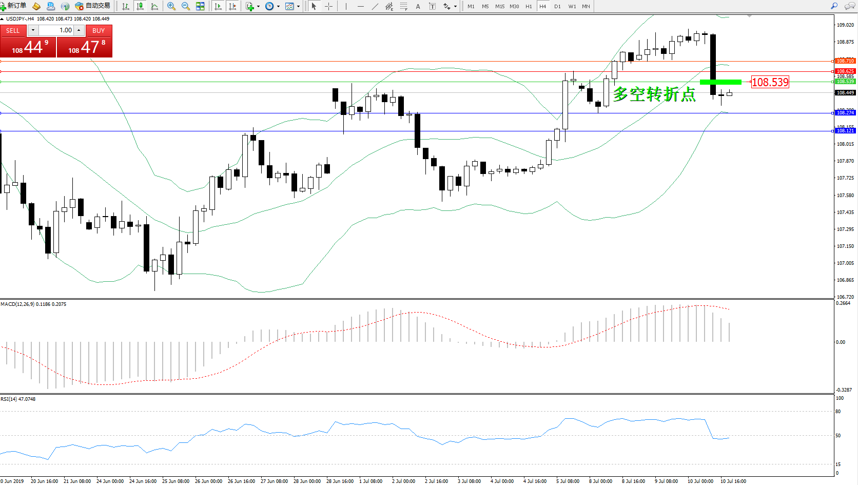 交易策略:108.539下方看跌,目标108.274、108.121