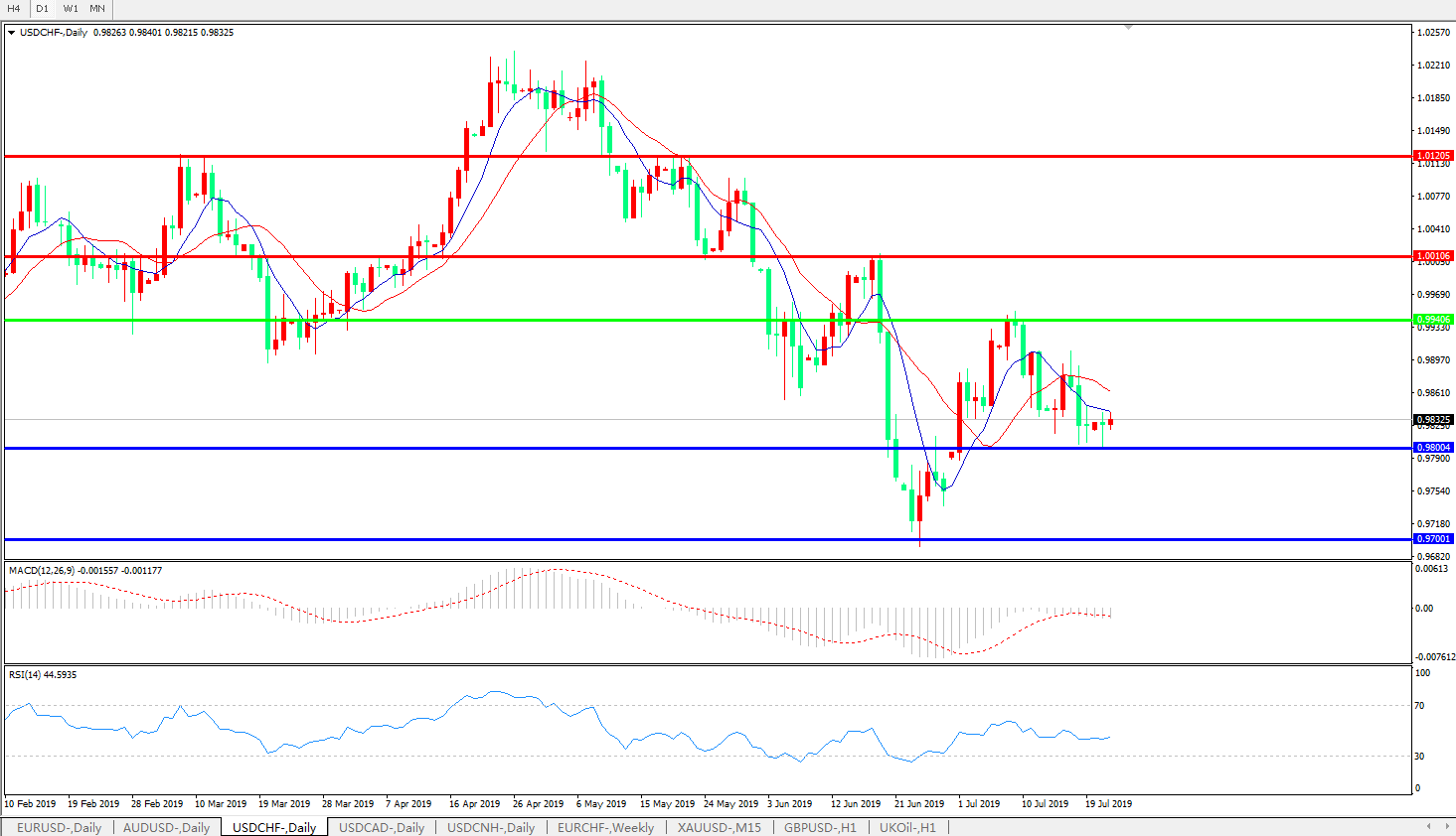 支撑位:0.9800、0.9700