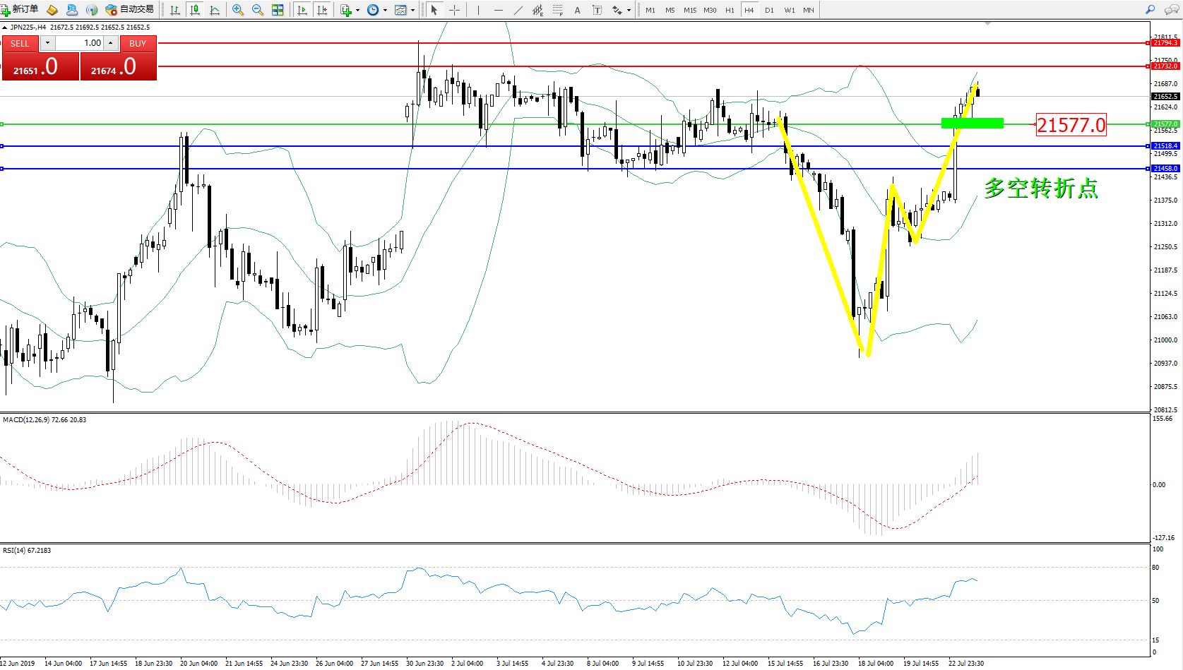日经225指数7月23日(周二)收盘上涨199.71点,涨幅0.93%,报21616.50点。共同社援引未具名高级官员的话报导,日本执政党赢得参院选举首相安倍晋三正考虑在9月中旬改组内阁,计划让财务大臣麻生太郎和内阁官房长官菅义伟留任。