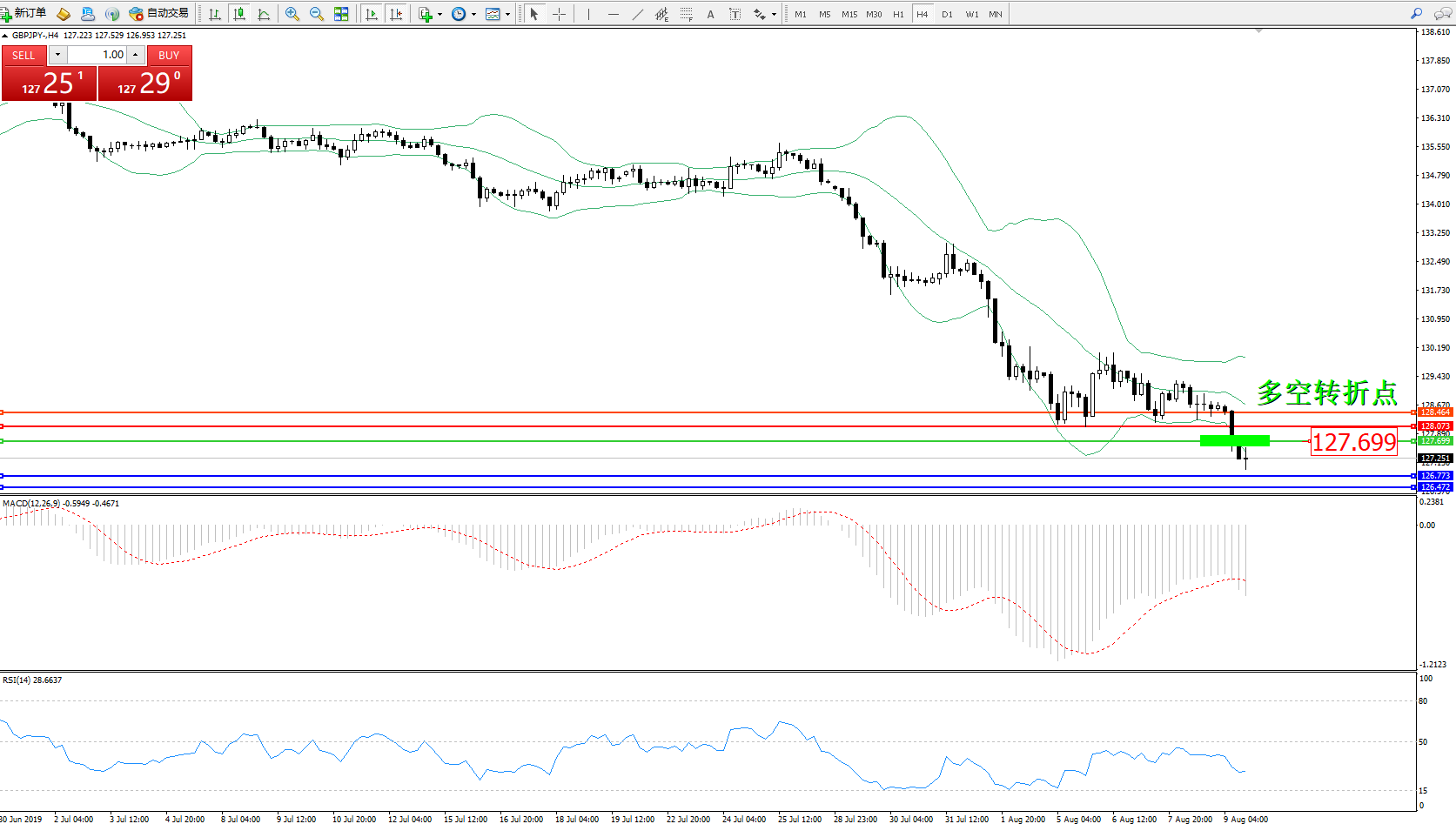交易策略:127.699下方看跌,目标126.773126.472
