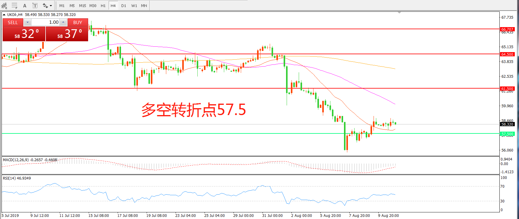 英国原油UKOIL     4小时图