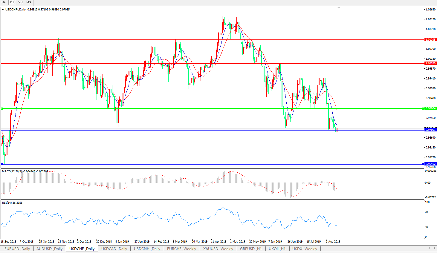 美元兑瑞郎USDCHF 日线图: