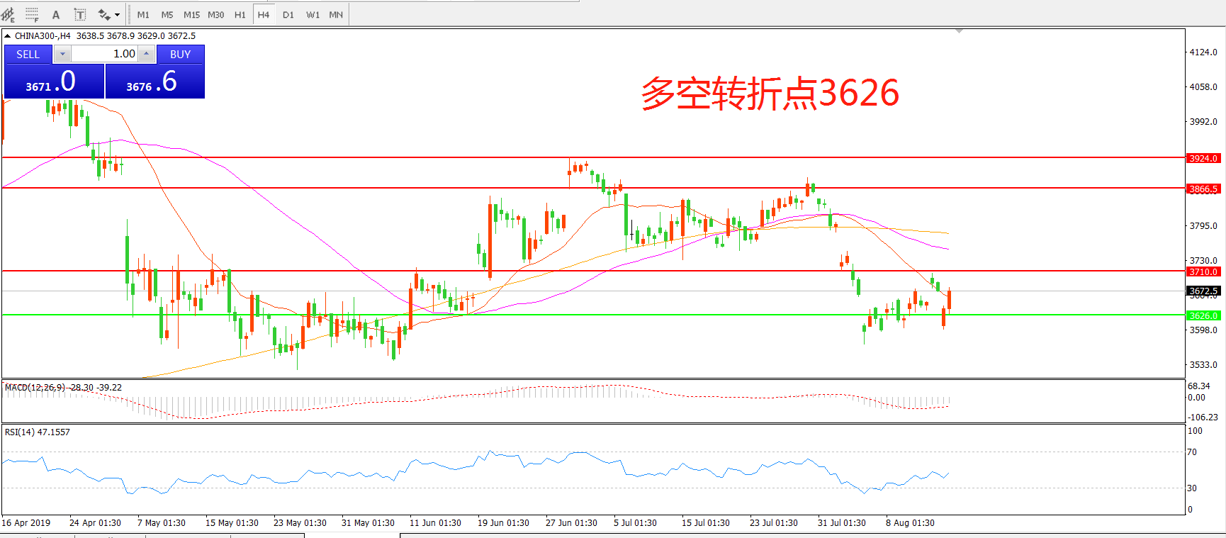 多空转折点:3626.00