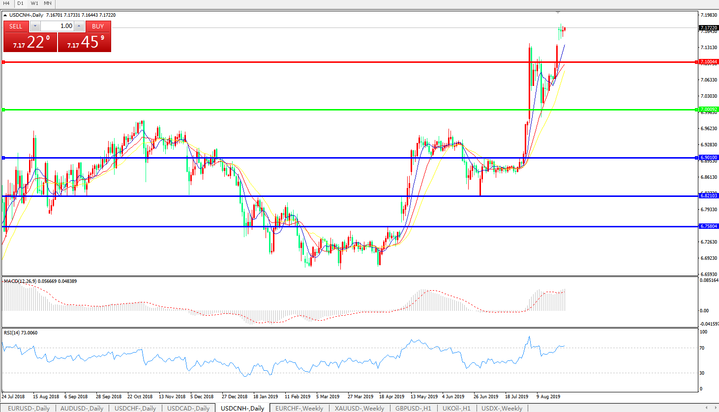 交易策略: 在7.0000之上,看涨,目标价位为7.1000,然后为7.2000。