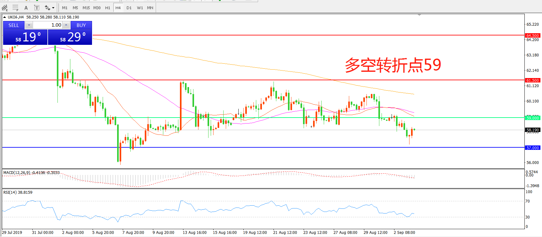 交易策略:在59.00之下看跌,目标57.00   53.00