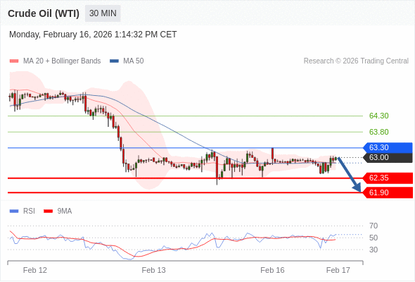 在 63.30 之下,看跌,目标价位为 62.35 ,然后为 61.90 。