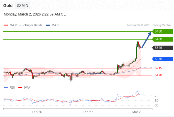 交易策略: 在 5275 之上,看涨,目标价位为 5400 ,然后为 5450 。
