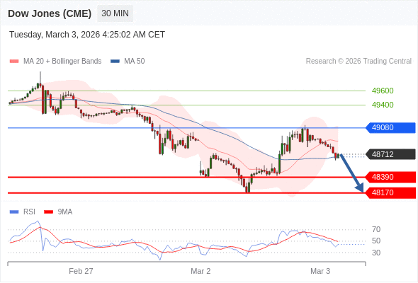 在 49080 之下,看跌,目标价位为 48390 ,然后为 48170 。