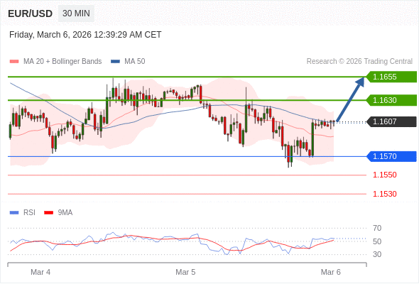 在 1.1570 之上,看涨,目标价位为 1.1630 ,然后为 1.1655 。