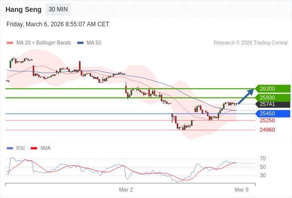 在 25450 之上,看涨,目标价位为 25930 ,然后为 26200 。