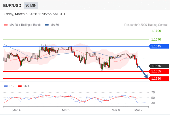 在 1.1645 之下,看跌,目标价位为 1.1555 ,然后为 1.1530 。