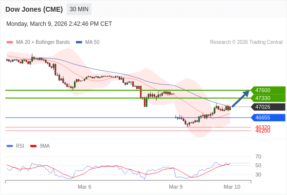 在 46655 之上,看涨,目标价位为 47330 ,然后为 47600 。