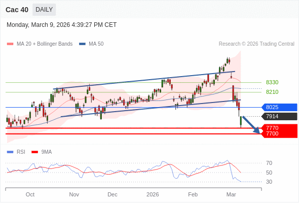 Cac 40 短线: 没有明显变化趋势。