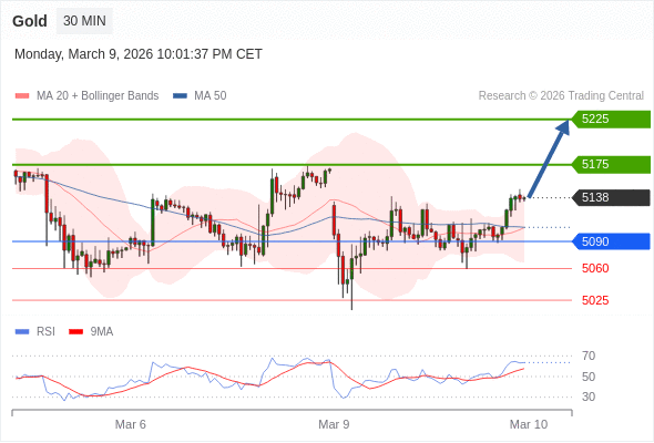 在 5090 之上,看涨,目标价位为 5175 ,然后为 5225 。
