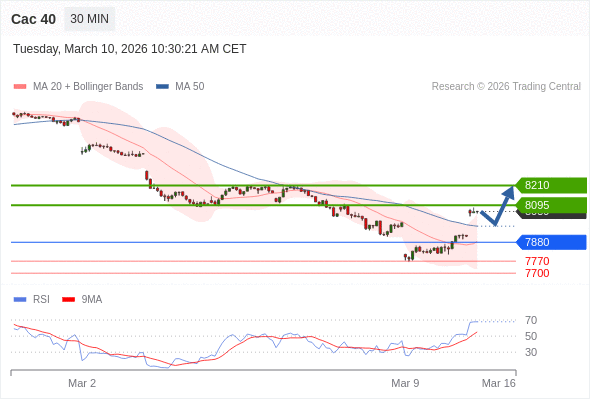 Cac 40 当日内: 持续上升。
