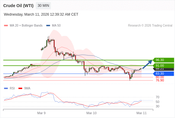在 83.30 之上,看涨,目标价位为 91.00 ,然后为 96.30 。