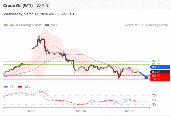 交易策略: 在 88.50 之下,看跌,目标价位为 80.00 ,然后为 76.90 。