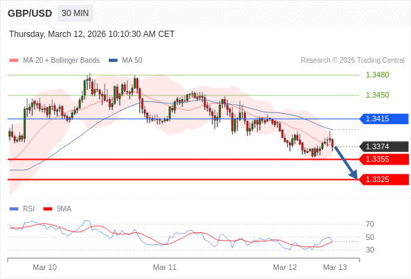 在 1.3415 之下,看跌,目标价位为 1.3355 ,然后为 1.3325 。