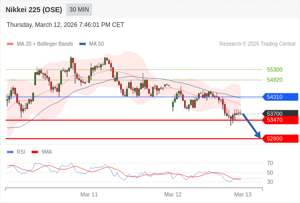 在 54310 之下,看跌,目标价位为 53470 ,然后为 52800 。