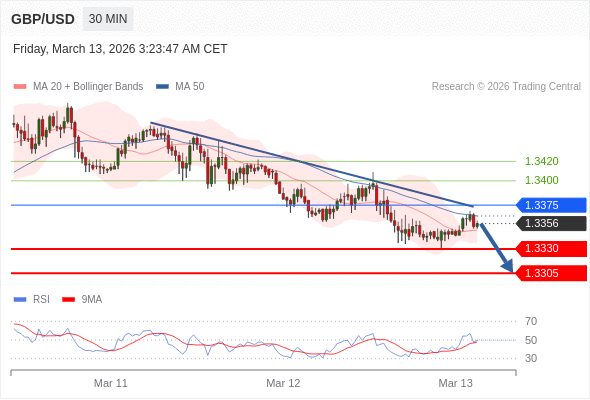 在 1.3375 之下,看跌,目标价位为 1.3330 ,然后为 1.3305 。