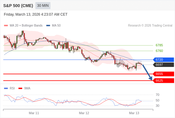 在 6720 之下,看跌,目标价位为 6655 ,然后为 6625 。