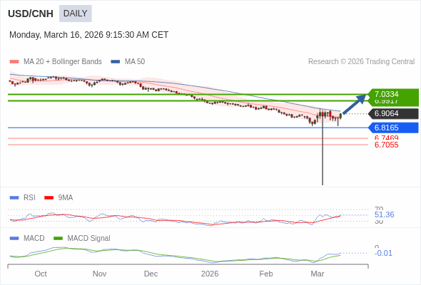 美元/人民币 短线 : 看涨。