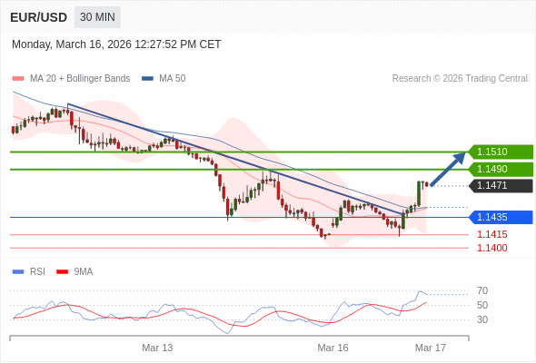 在 1.1435 之上,看涨,目标价位为 1.1490 ,然后为 1.1510 。