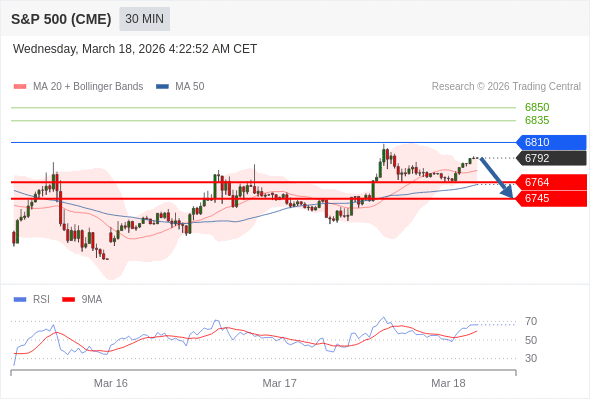 在 6810 之下,看跌,目标价位为 6764 ,然后为 6745 。
