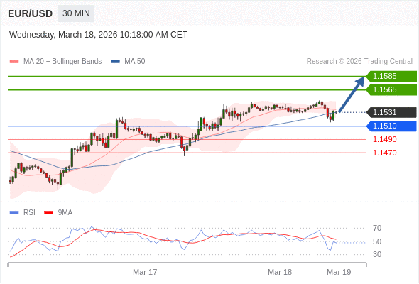 在 1.1510 之上,看涨,目标价位为 1.1565 ,然后为 1.1585 。