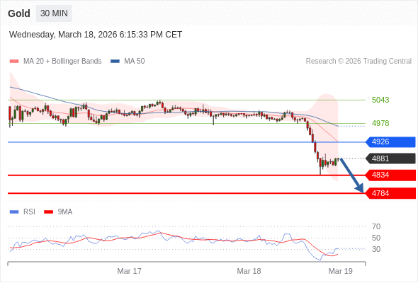 在 4926 之下,看跌,目标价位为 4834 ,然后为 4784 。