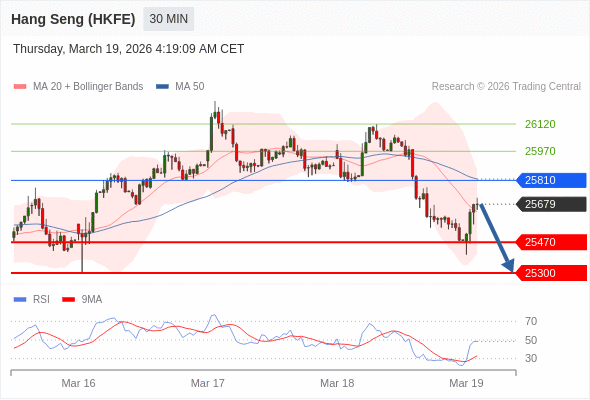香港恒生指数期货 当日内: 短期关键阻力位在25810。