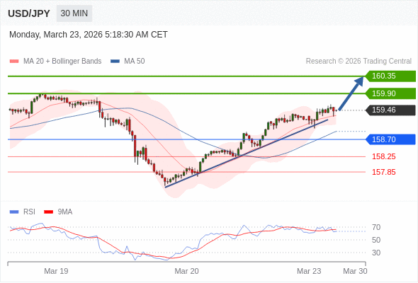 在 158.70 之上,看涨,目标价位为 159.90 ,然后为 160.35 。