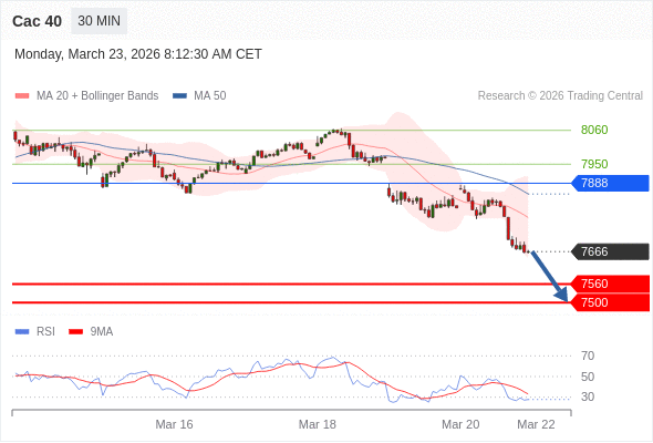 在 7888 之下,看跌,目标价位为 7560 ,然后为 7500 。