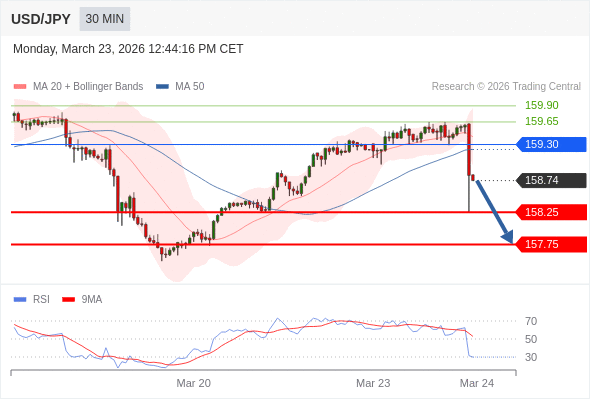 在 159.30 之下,看跌,目标价位为 158.25 ,然后为 157.75 。