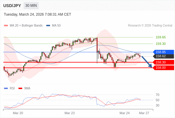 在 158.85 之下,看跌,目标价位为 158.30 ,然后为 158.00 。