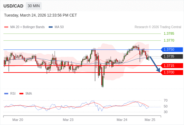 在 1.3750 之下,看跌,目标价位为 1.3715 ,然后为 1.3700 。