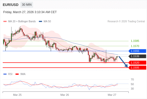 在 1.1555 之下,看跌,目标价位为 1.1520 ,然后为 1.1505 。