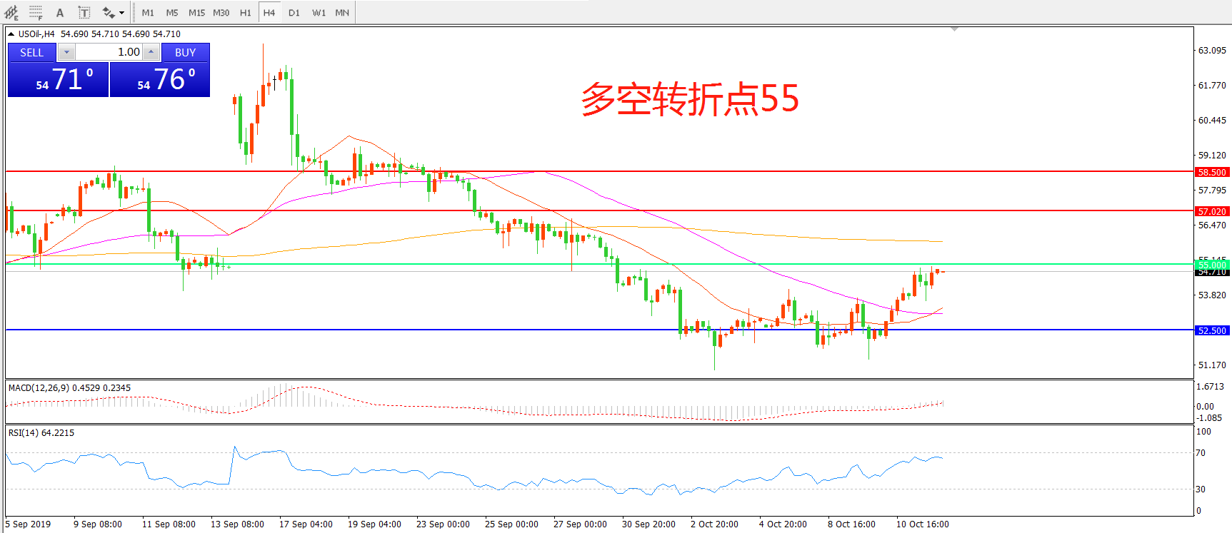 交易策略:在55.00之上看涨,目标57.00 58.50