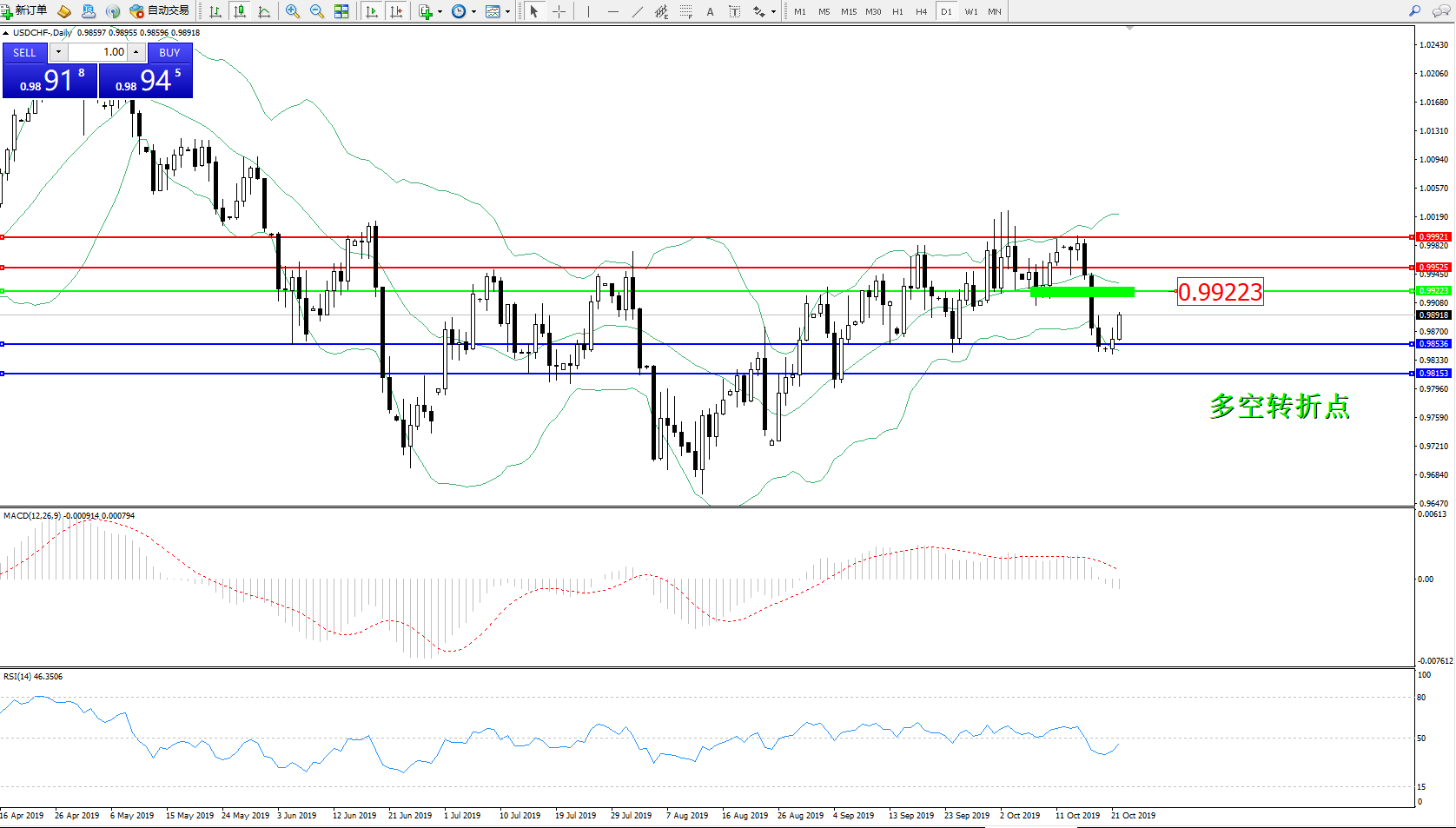 交易策略:0.99223下方看跌,目标0.98536、0.98153