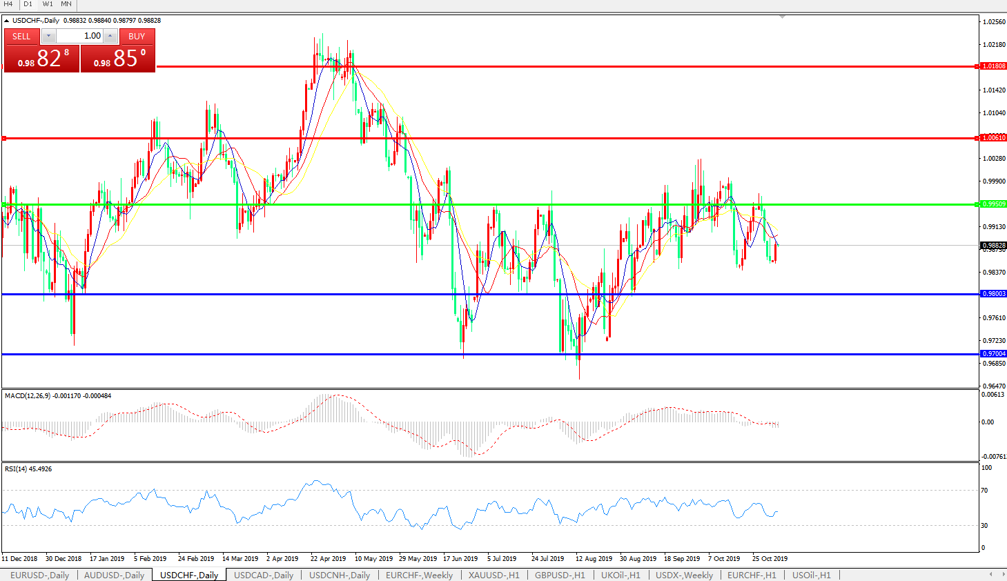 美元兑瑞郎USDCHF 日线图:
