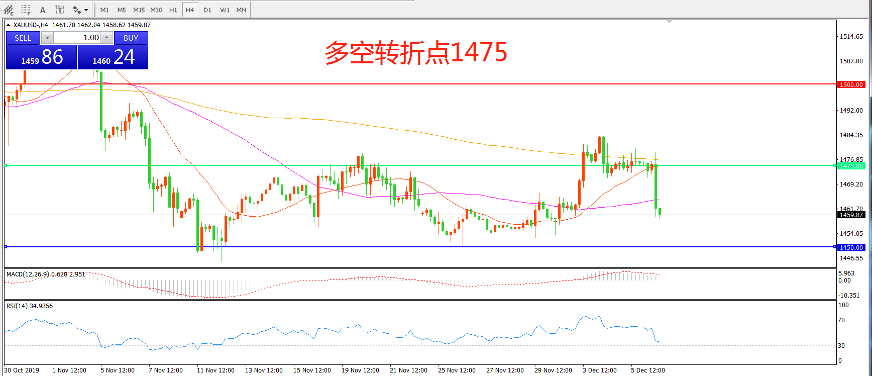 多空转折点:1475.00